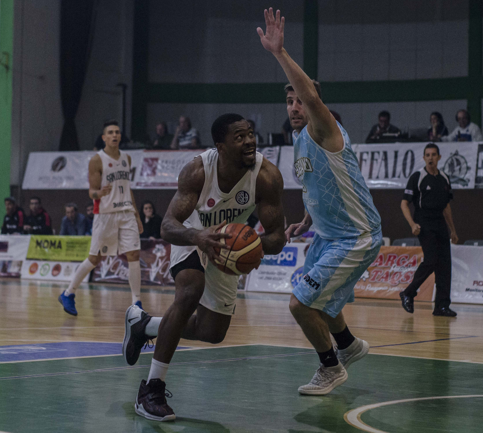 Hispano por su parte mostró entrega y actitud para frenar a su rival, situación que se le volvió por momentos imposible. Al descanso de medio tiempo, San Lorenzo se fue arriba en el marcador 59 a 29 con 15 puntos de Tucker y 11 de Calfani. En el local se destacó Morrison con 9 puntos y Buemo con 6.