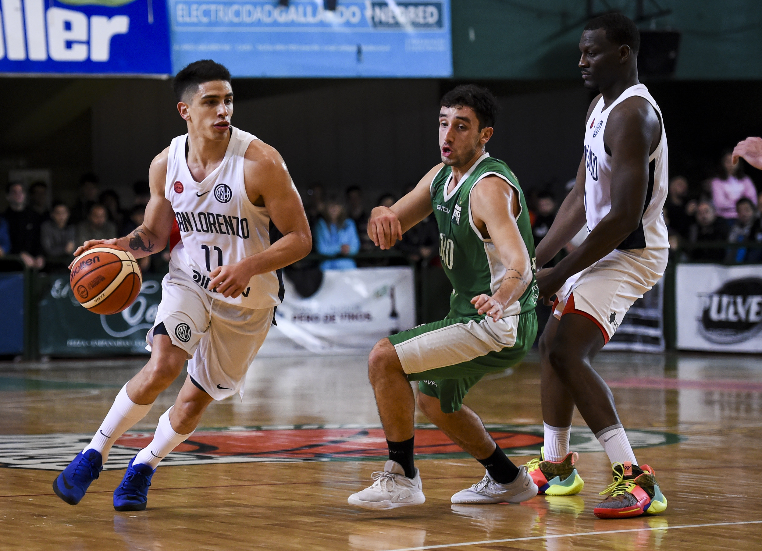 El partido empezó con mucha intensidad y entrega de ambos equipos. La visita tomó la delantera, pero rápidamente, un triple de Massarelli y un doble de Mitchell pusieron las cosas 10-9. San Lorenzo corrió la cancha, pasó al frente y puso distancia de cuatro con un ágil Sims. La marca de la vista era dura y provocó casi tres minutos sin anotaciones del Verdolaga, mientras que los de García, sacaron una luz de cinco para cerrar el primer cuarto 13-18.