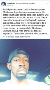 Ivory Clark, extranjero conocido en nuestra Liga, expresó en su cuenta de Facebook que contrajo el coronavirus. El foráneo, que se retiró ya del básquet profesional, aprovechó a saludar a Quilmes por su último aniversario y también informó sobre la infección.