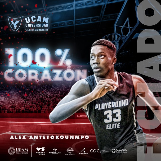 El UCAM Murcia ha fichado con un contrato de tres temporadas a Alex Antetokounmpo, joven jugador de 18 años que es hermano de la estrella de la NBA Giannis Antetokounmpo, MVP de la liga profesional estadounidense y que en principio jugará en el equipo filial de los murcianos.