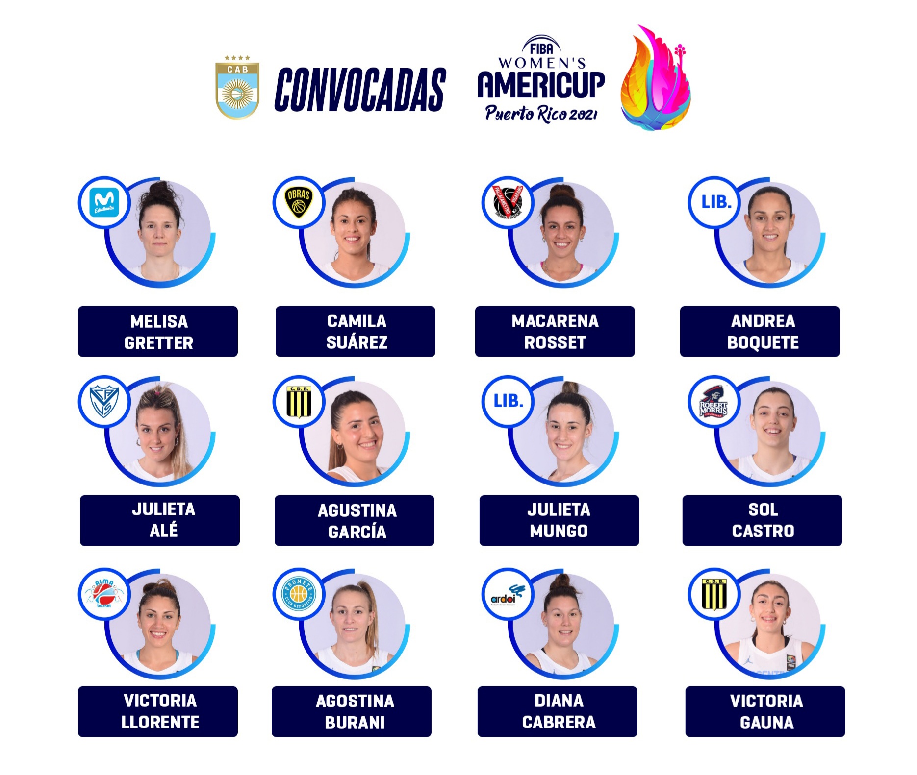 Melisa Gretter iba a ser la capitana del conjunto por primera vez, mientras que Agostina Burani iba a llegar con esta a su séptimo participación en FIBA Américas/Americup, convirtiéndose en la jugadora con más participaciones siendo que desde el 2009 no a faltado a ninguna edición.