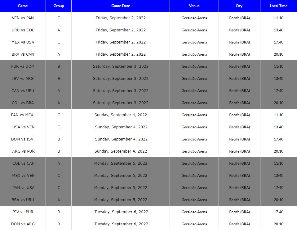 Los horarios de los partidos de la FIBA AmeriCup 2022, que se disputará en Recife, Brasil entre el 2 y el 11 de septiembre, fueron anunciados por la Oficina Regional de FIBA en las Américas.