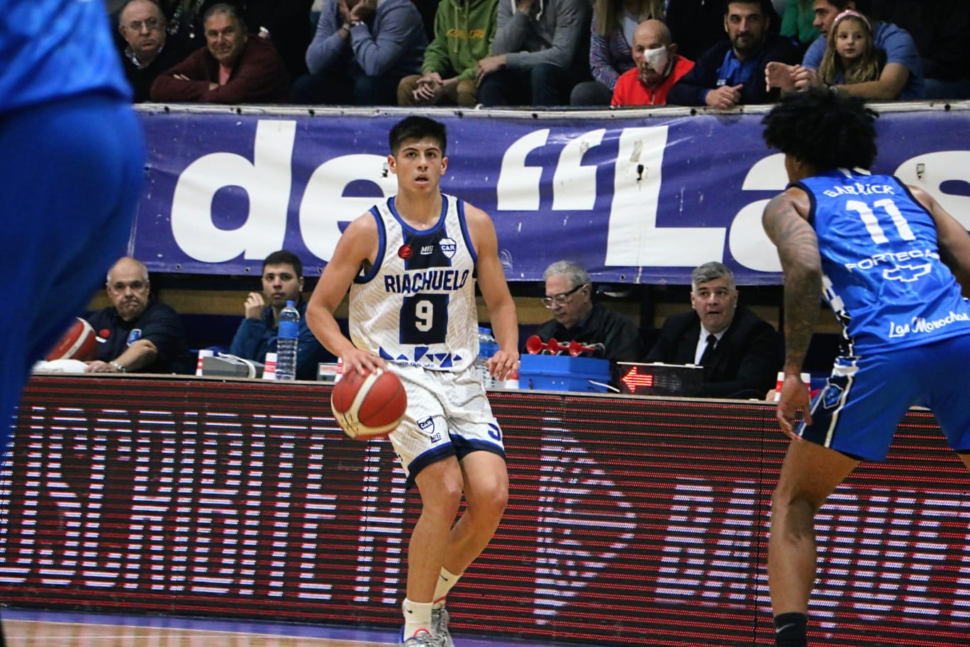 El local comenzó mejor el encuentro con Jeremías Sandrini manejando los ritmos, y con Slider y Filipetti anotando para poner una máxima de 9 puntos. A Riachuelo se lo notaba incómodo, todavía tratando de encontrar una fluidez ofensiva.