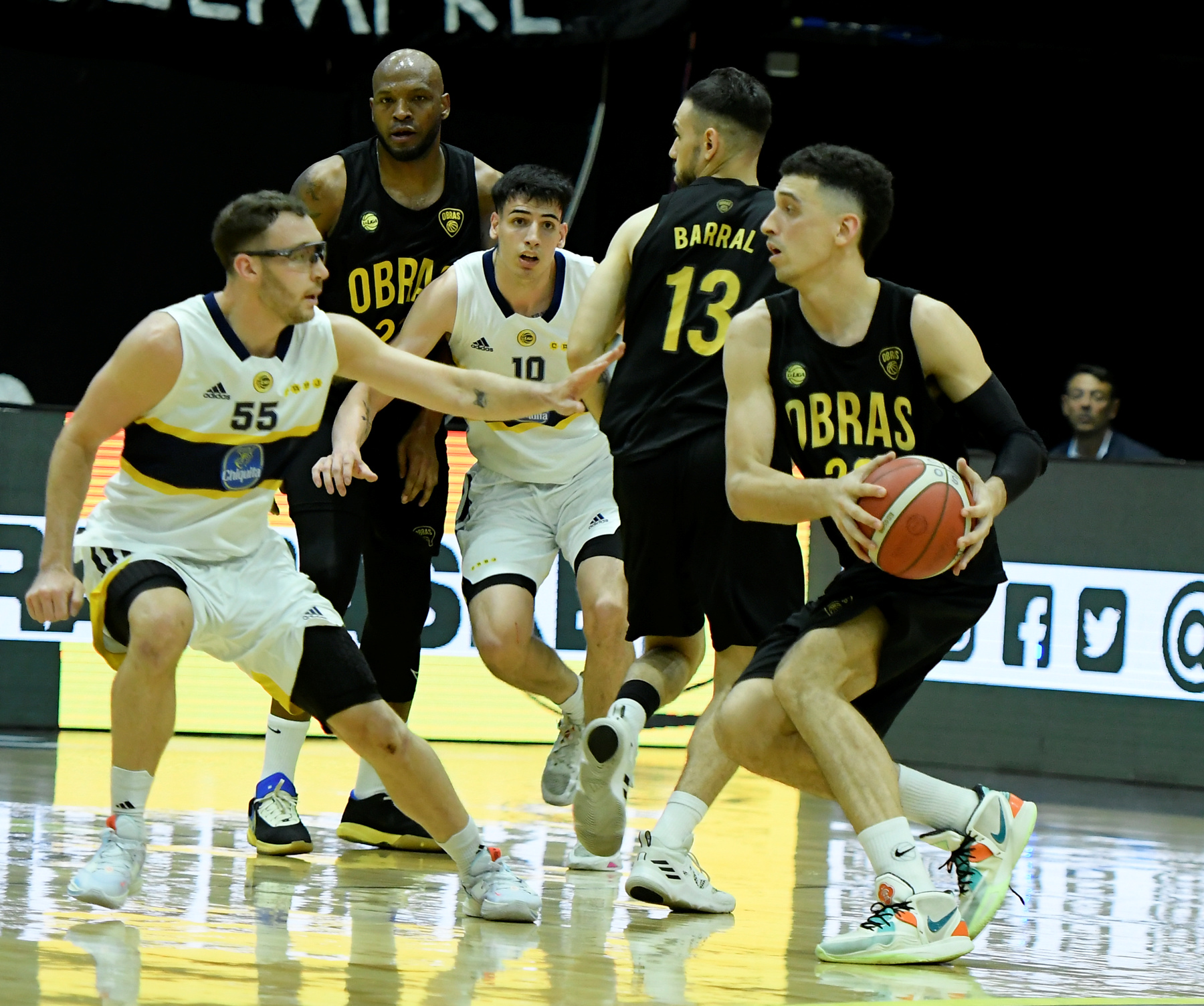 El dominio del dueño de casa se hizo notar desde el arranque. Con una gran tarea colectiva, altos porcentajes y un ritmo de juego altísimo, se empezaron a escapar en el marcador. Boca no logró solucionar la efectividad del rival desde el perímetro. En este rubro Obras castigó con un buenísimo 15/35 (43%), mientras que los visitantes no superaron el 35%, algo que viene sucediendo en la temporada.