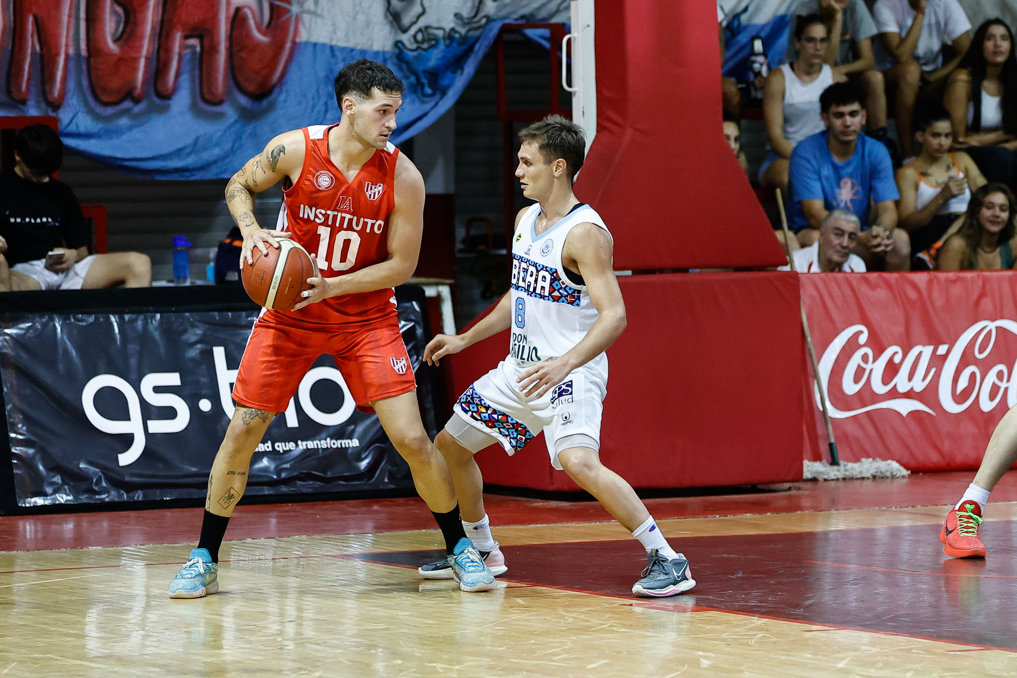 El encuentro en La Caldera, fue en su totalidad una batalla. Durante el primer tiempo, comenzaron repartiéndose constantemente el liderato en los tantos. En el cuarto inicial, La Gloria se llevó la ventaja gracias a la capacidad anotadora de Nicola Pomoli (11 puntos, 1 rebote, 3 asistencias, 3 robos). Pero el segundo período no fue distinto y continuaron superándose por una acotada ventaja, que rápidamente su rival empataría y superaría. Eso sucedió hasta los minutos finales del bloque, donde Instituto empató la desventaja y con una corrida de 6-0 se retiró al descanso cuatro unidades arriba.