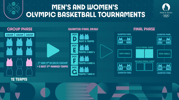 París 2024 presentará el mismo formato de competencia que en Tokio 2020 -realizado en 2021 por la pandemia del COVID-19-. Será la segunda ocasión consecutiva en la que habrá tres grupos de cuatro equipos.