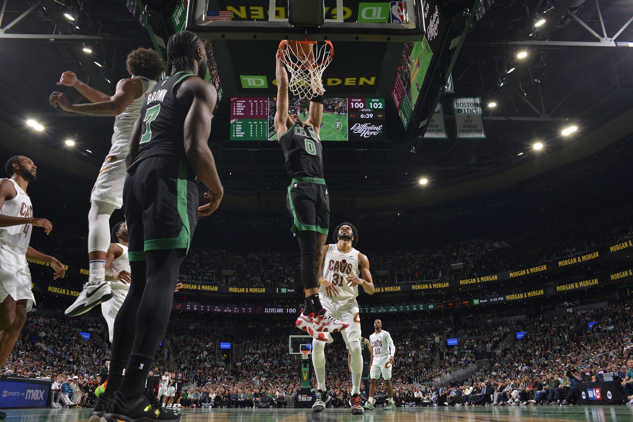 Los Celtics tuvieron un arrasador comienzo de partido terminando la primera mitad siendo ampliamente superiores. Cleveland logró reducir la desventaja de 21 puntos a solo dos en el tercer cuarto. Derrick White apareció con varios triples para mantener al equipo en ventaja, a pesar del intento de Donovan Mitchell quien encestó un espectacular triple con 24 segundos en el reloj, dejando el marcador a cuatro puntos. Tatum respondió al convertir uno de dos tiros libres.