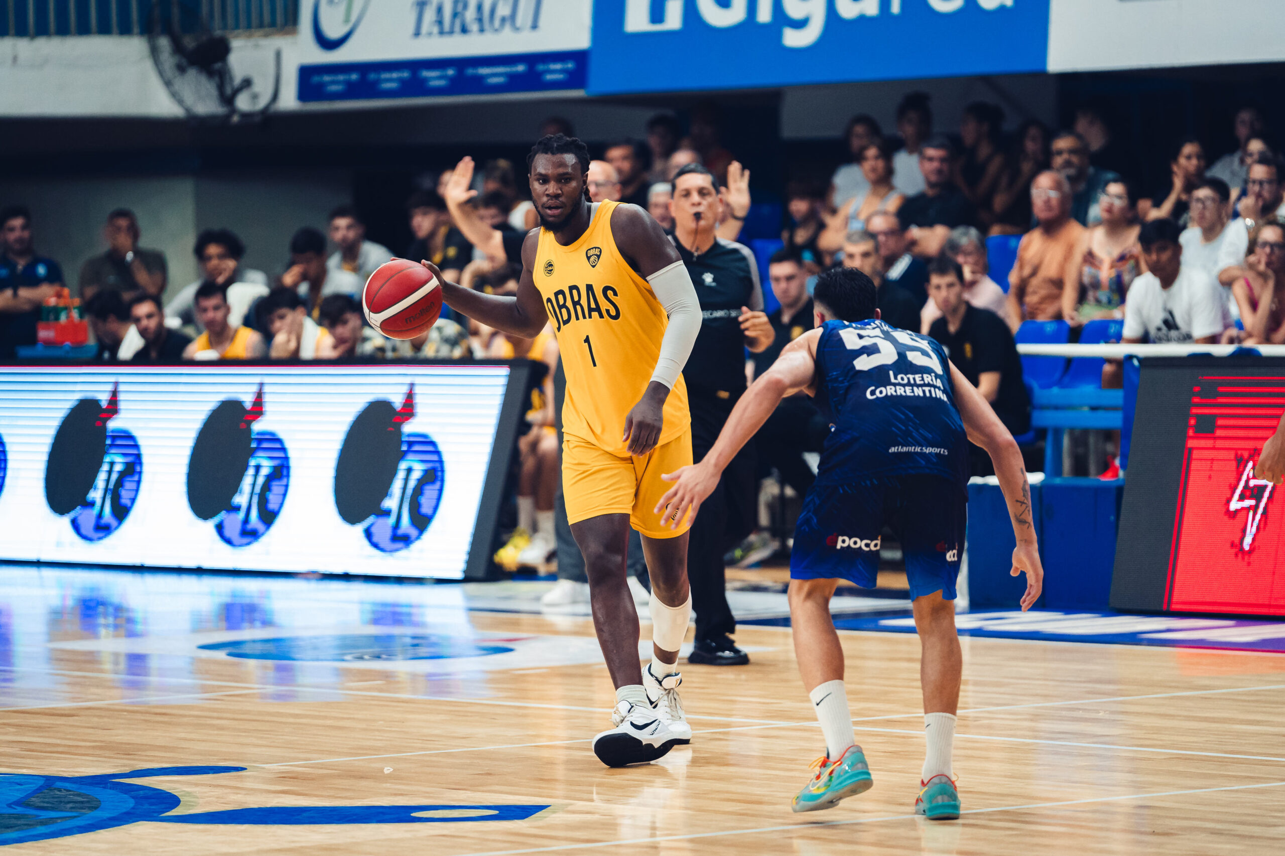El cotejo en suelo correntino, fue dominado en su mayoría por Regatas, pero con una corta ventaja. Obras había tomado el liderato del marcador en el comienzo del juego, pero rápidamente el Remero dio vuelta el resultado y pasó a ganar. De la mano de Charles Thomas III y su aporte de 17 puntos, seis rebotes, dos robos, dos tapones y una asistencia, los comandados por Fernando Calvi se impusieron y controlaron el ritmo del partido para retirarse al descanso ganando.