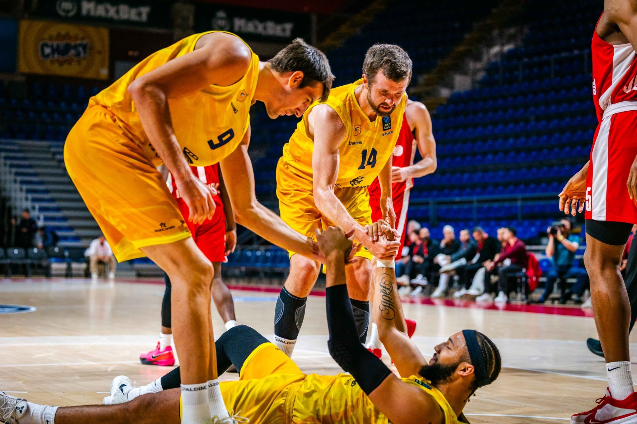 Gran Canaria tuvo que batallar a lo largo de todo el encuentro para quedarse con la victoria. En el primer cuarto, el equipo de Jaka Lakovic logró tomar la ventaja con Caleb Homesley como máximo destacado, gracias a su aporte de 21 puntos, cuatro rebotes y tres asistencias. Pero Hapoel no le haría el cotejo tan sencillo a los isleños, ya que los 24 tantos y cinco pases de gol de Jared Harper, pondrían a ganar al conjunto israelí por dos unidades (44-42) a la hora de retirarse al descanso.