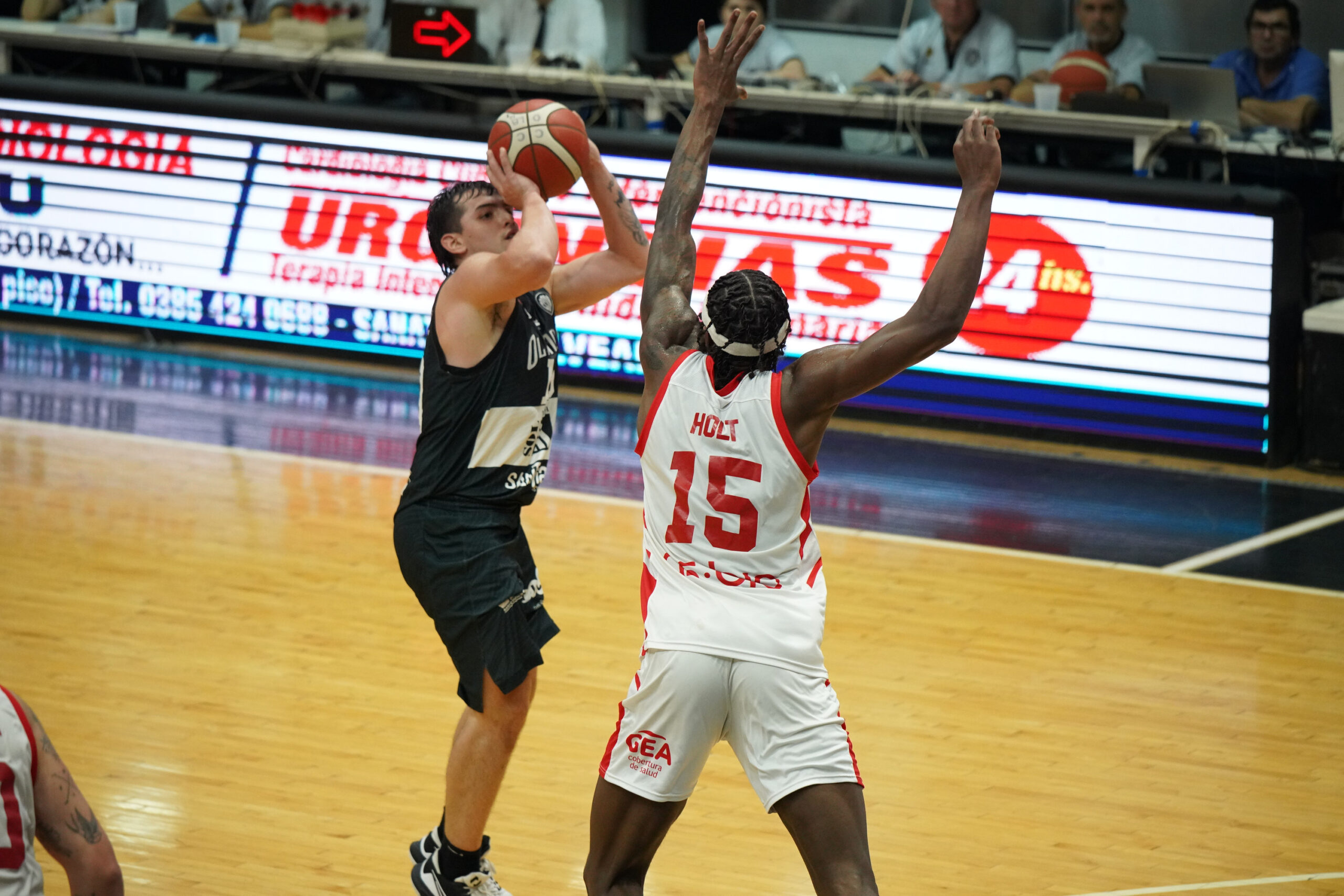 El cotejo en suelo bandeño, fue dominado por Olímpico casi de principio a fin. Instituto había arrancado ganando durante el primer cuarto, donde consiguió distanciarse por tan solo seis tantos. Pero a partir del segundo período, el Negro pasaría a ganar y no bajaría más en el marcador. Con Guillermo Aliende como figura, gracias a sus 22 puntos, dos rebotes, una asistencia y un robo, rápidamente cambiarían la cara y comenzarían a distanciarse de la Gloria. Al descanso, los de Capelli dominaban con un parcial de 49-35 a su favor.