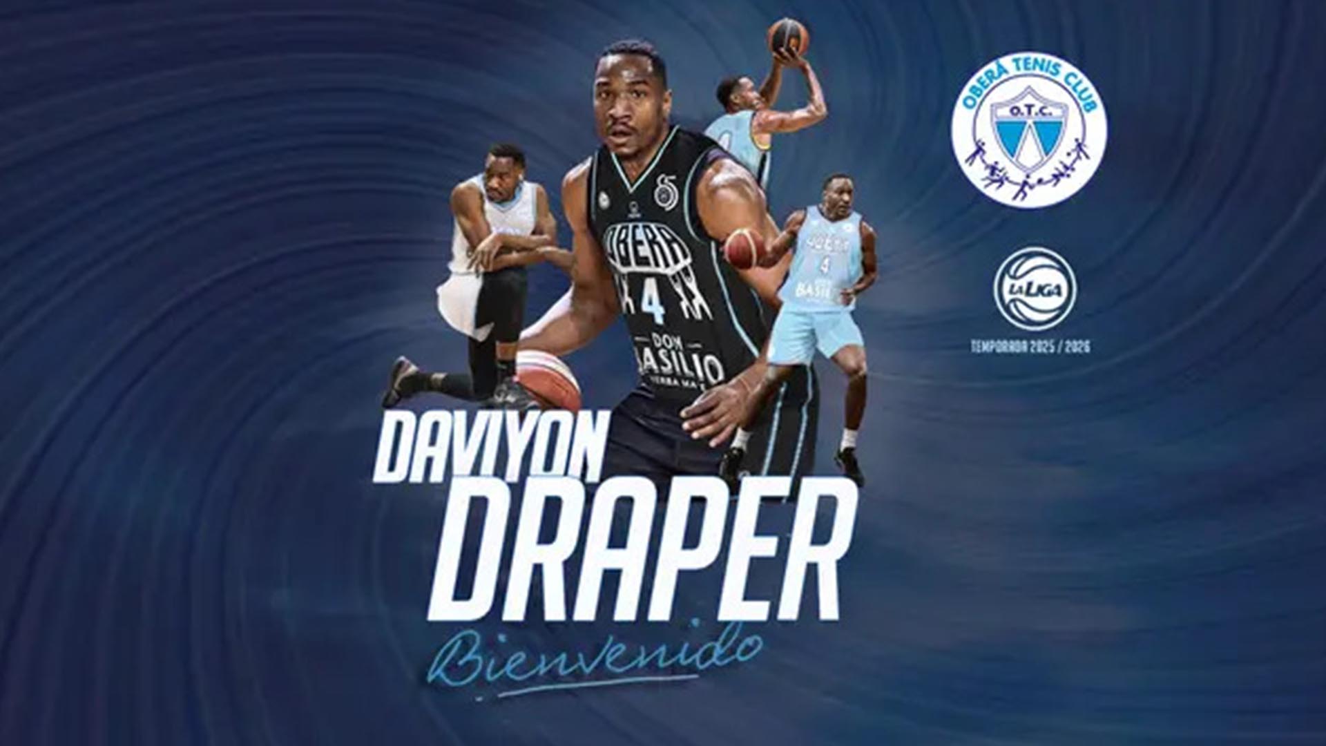 Oberá Tenis Club continúa sumando caras nuevas para la temporada 2025-26 de la Liga Nacional. Este viernes anunció la llegada de Daviyon Draper, quien es la quinta alta del equipo de cara a la próxima campaña. El ala-pivote estadounidense arriba tras su paso por el básquetbol paraguayo.