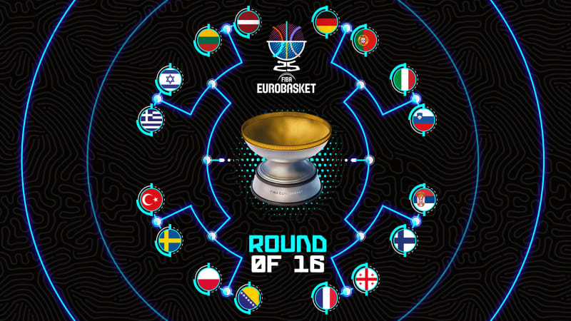 Imagen con los cruces de octavos de finales del EuroBasket 2025.