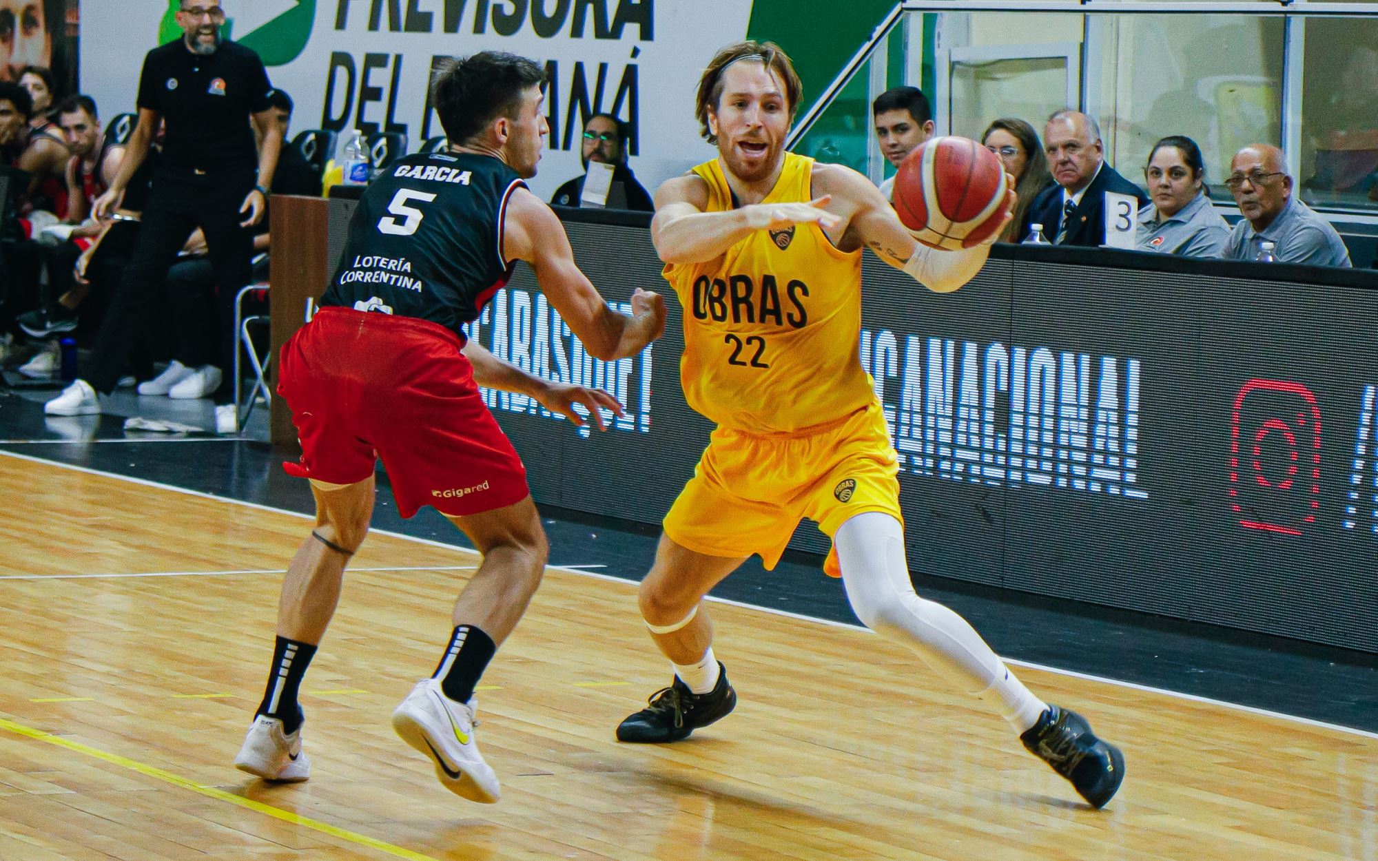 San Martín comenzó con intensidad y ritmo, imponiendo condiciones desde el inicio. La solidez defensiva y la paciencia en ataque le permitieron cerrar el primer cuarto con ventaja de 17-8, ante un Obras que apostaba al tiro exterior, pero sin efectividad. En el segundo parcial, el conjunto correntino atravesó un tramo de desconcentración que cambió el desarrollo del juego. El tachero logró emparejar las acciones y luego pasó al frente, dañando en la pintura y encontrando respuestas desde el perímetro en Ty Sabin. Con aportes de Inyaco y Zezular, Obras se fue al descanso arriba 32-27.