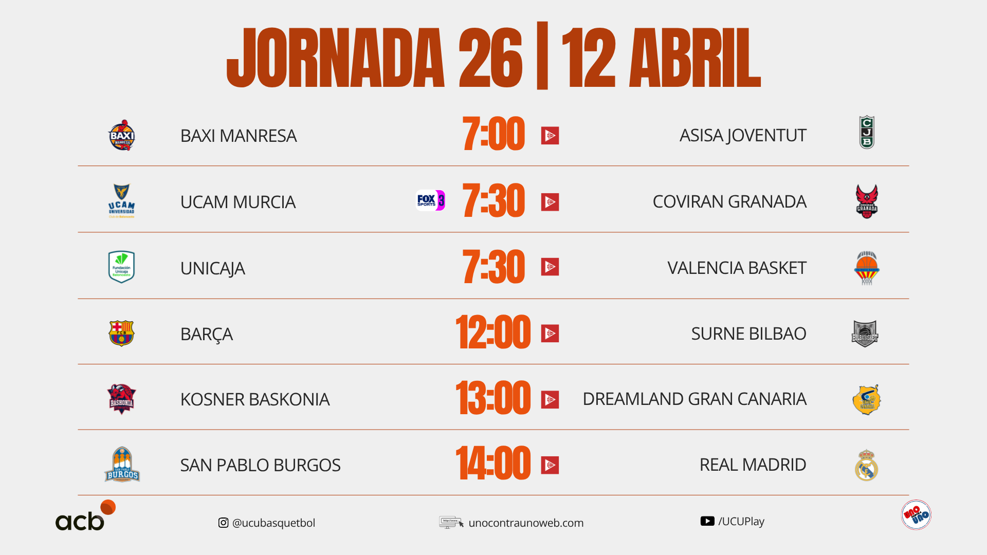– Historial del cruce: El historial está claramente a favor del Real Madrid que ganó 10 de los once encuentros y hoy descansa como líder de tabla. Por el otro lado, el San Pablo Burgos que viene de ganar 4 de sus últimos 7 encuentros luego de ganar solo 3 de sus primeros 18, buscará alejarse de la zona de descenso.