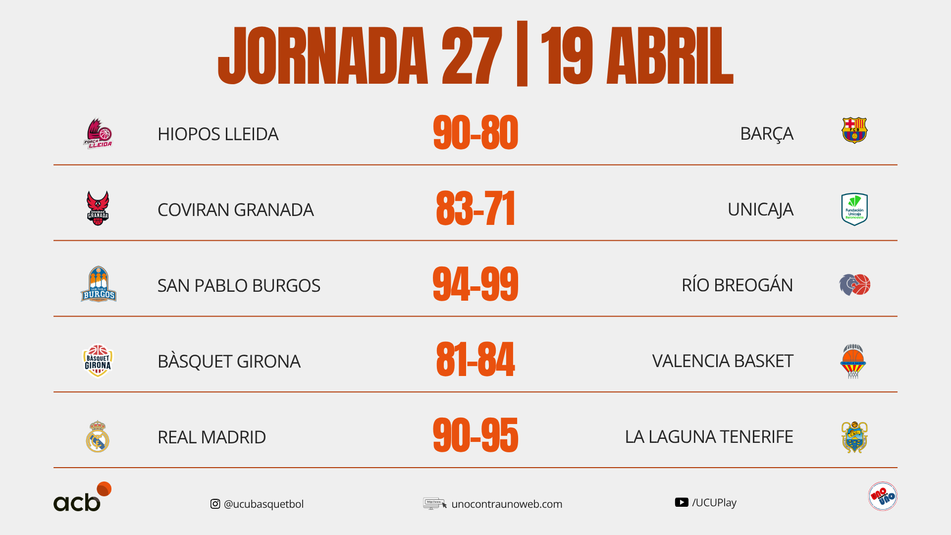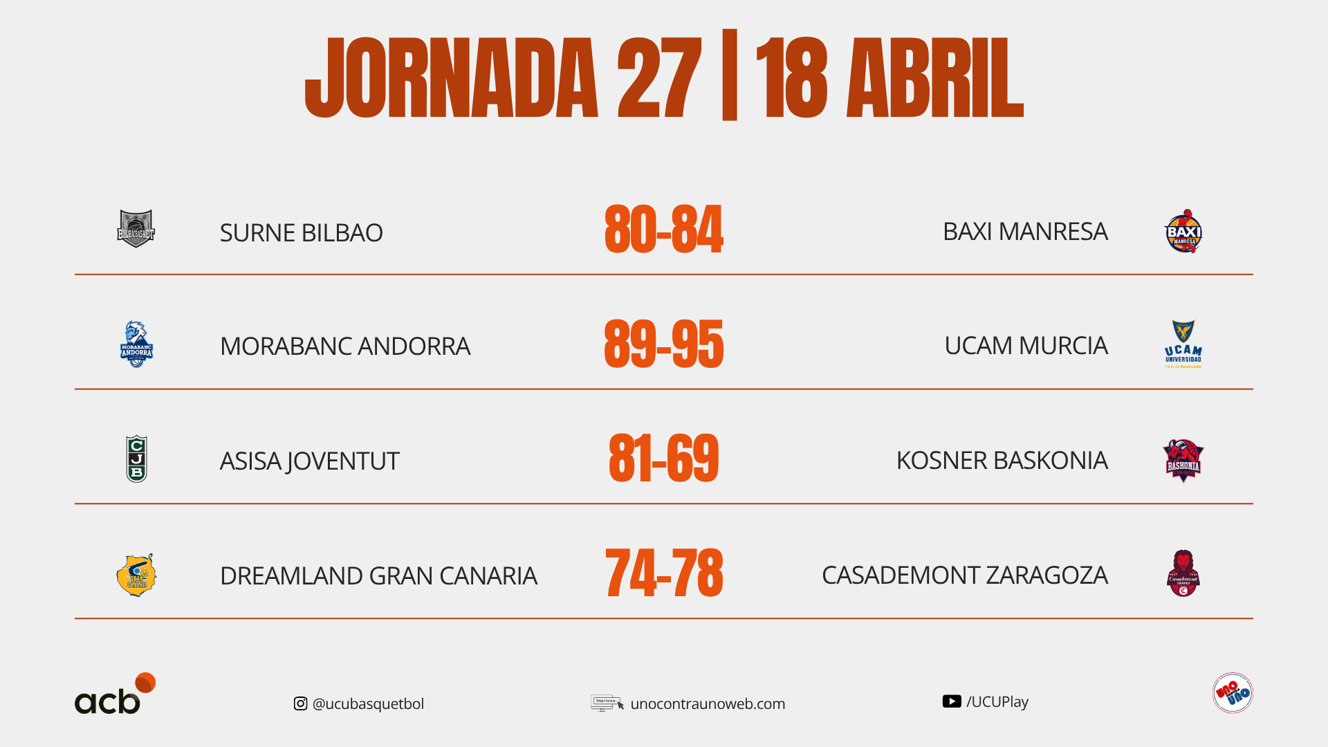 Los resultados de la Liga ACB